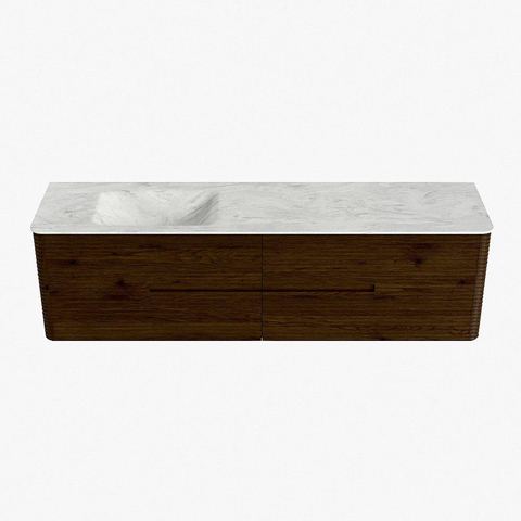 Mondiaz CIRO-DLUX Meuble de salle de bains - 180x45x50cm - Plan vasque Solid surface Opalo - 1 vasque à gauche - sans trous de robinetterie - 4 tiroirs - Noyer