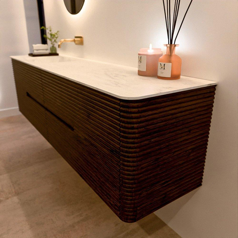 Le meuble de salle de bain CIRO-DLUX a été développé pour ceux qui choisissent un design moderne, des matériaux naturels et une fonctionnalité de haute qualité. Avec des dimensions allant de 70 cm à 190 cm, la gamme CIRO-DLUX s’intègre facilement aussi bien dans les salles de bain compactes que dans les grands espaces de design. Chaque meuble est une combinaison équilibrée d’esthétique, de savoir-faire et de qualité durable.