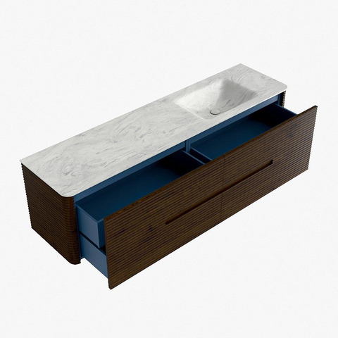 Mondiaz CIRO-DLUX Meuble de salle de bains - 180x45x50cm - Plan-vasque en solid surface Opalo - 1 vasque à droite - 1 trou de robinetterie - 4 tiroirs - Noyer