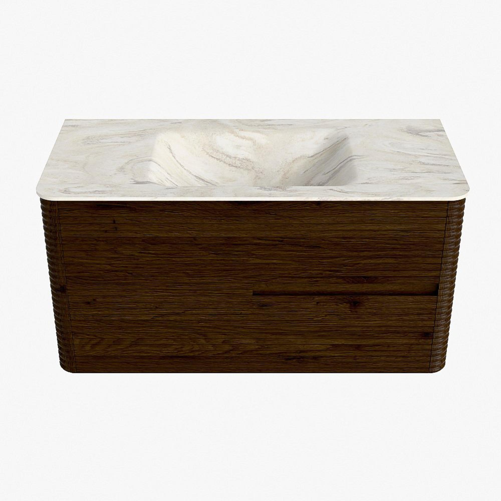 Mondiaz CIRO-DLUX Meuble de salle de bains - 100x45x50cm - Vasque solid surface Ostra - 1 lavabo au milieu - 1 trou de robinet - 2 tiroirs - Noyer