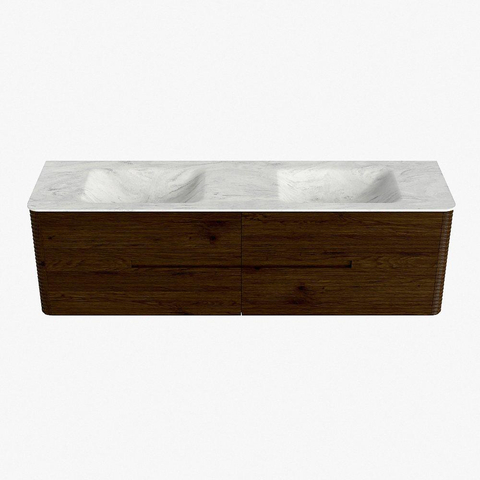 Mondiaz CIRO-DLUX Ensemble meuble de salle de bains - 170x45x50cm - Plan vasque solid surface Opalo - 2 vasques double - 2 perçages pour robinet - 4 tiroirs - Noyer