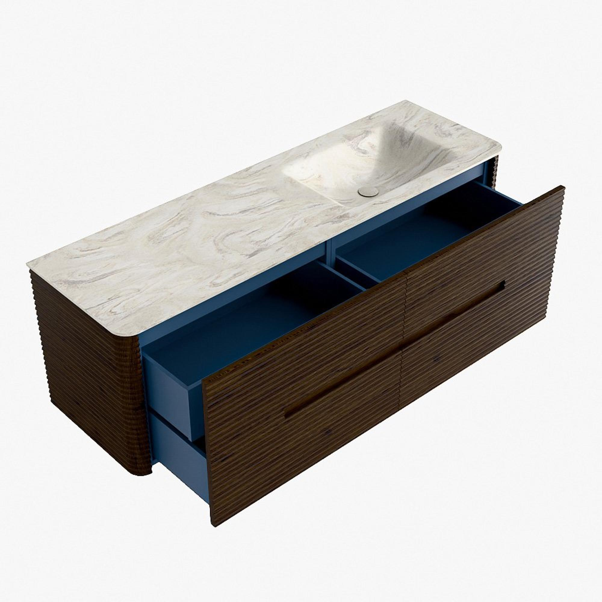 Mondiaz CIRO-DLUX Meuble de salle de bains - 150x45x50cm - Plan-vasque solid surface Ostra - 1 vasque à droite - sans trous de robinetterie - 4 tiroirs - Noyer