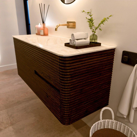 Mondiaz CIRO-DLUX Ensemble de meubles de salle de bains - 120x45x50cm - Plan-vasque solid surface Ostra - 1 vasque au milieu - sans trous de robinetterie - 2 tiroirs - Noyer