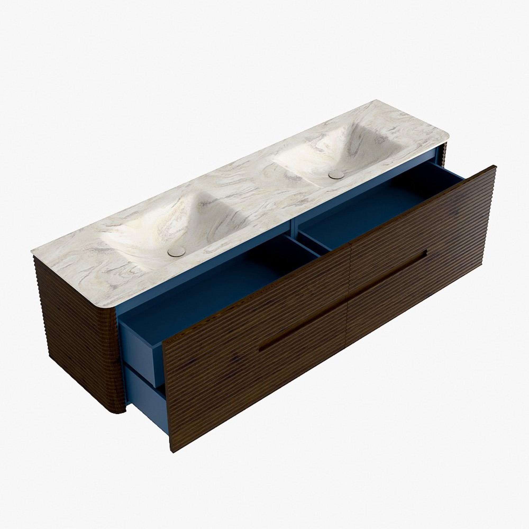 Mondiaz CIRO-DLUX Ensemble meuble de salle de bains - 180x45x50cm - Plan-vasque solid surface Ostra - 2 vasques double - 2 trous de robinetterie - 4 tiroirs - Noyer