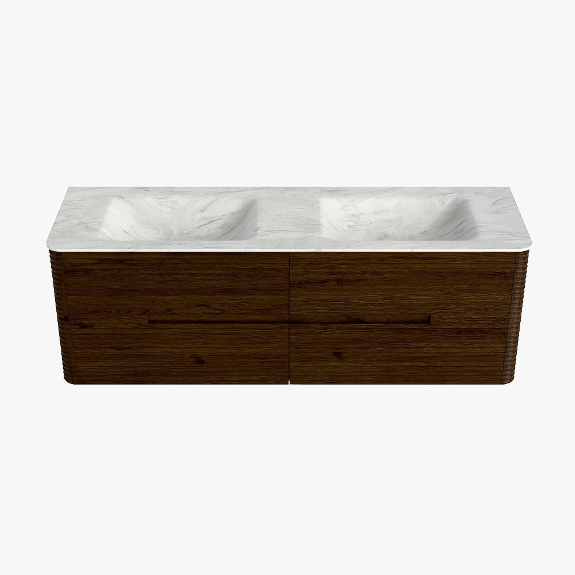 Mondiaz CIRO-DLUX Meuble de salle de bains - 150x45x50cm - Plan vasque solid surface Opalo - 2 vasques double - 2 trous de robinetterie - 4 tiroirs - Noyer