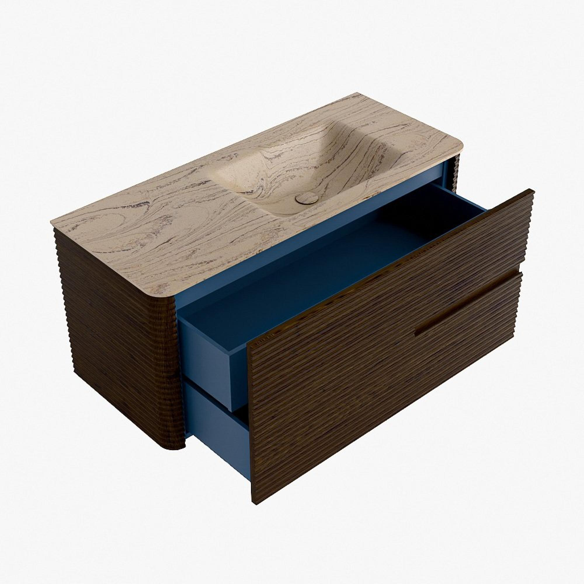 Mondiaz CIRO-DLUX Meuble de salle de bains - 110x45x50cm - Plan-vasque solid surface Arena - 1 vasque à droite - 1 trou de robinet - 2 tiroirs - Noyer