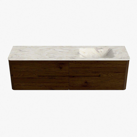 Mondiaz CIRO-DLUX Ensemble de meubles de salle de bains - 170x45x50cm - Plan-vasque Solid surface Ostra - 1 vasque à droite - sans trous de robinet - 4 tiroirs - Noyer