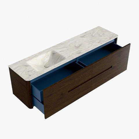 Mondiaz CIRO-DLUX Meuble de salle de bains - 180x45x50cm - Plan vasque solid surface Ostra - 1 vasque à gauche - sans trous de robinetterie - 4 tiroirs - Noyer