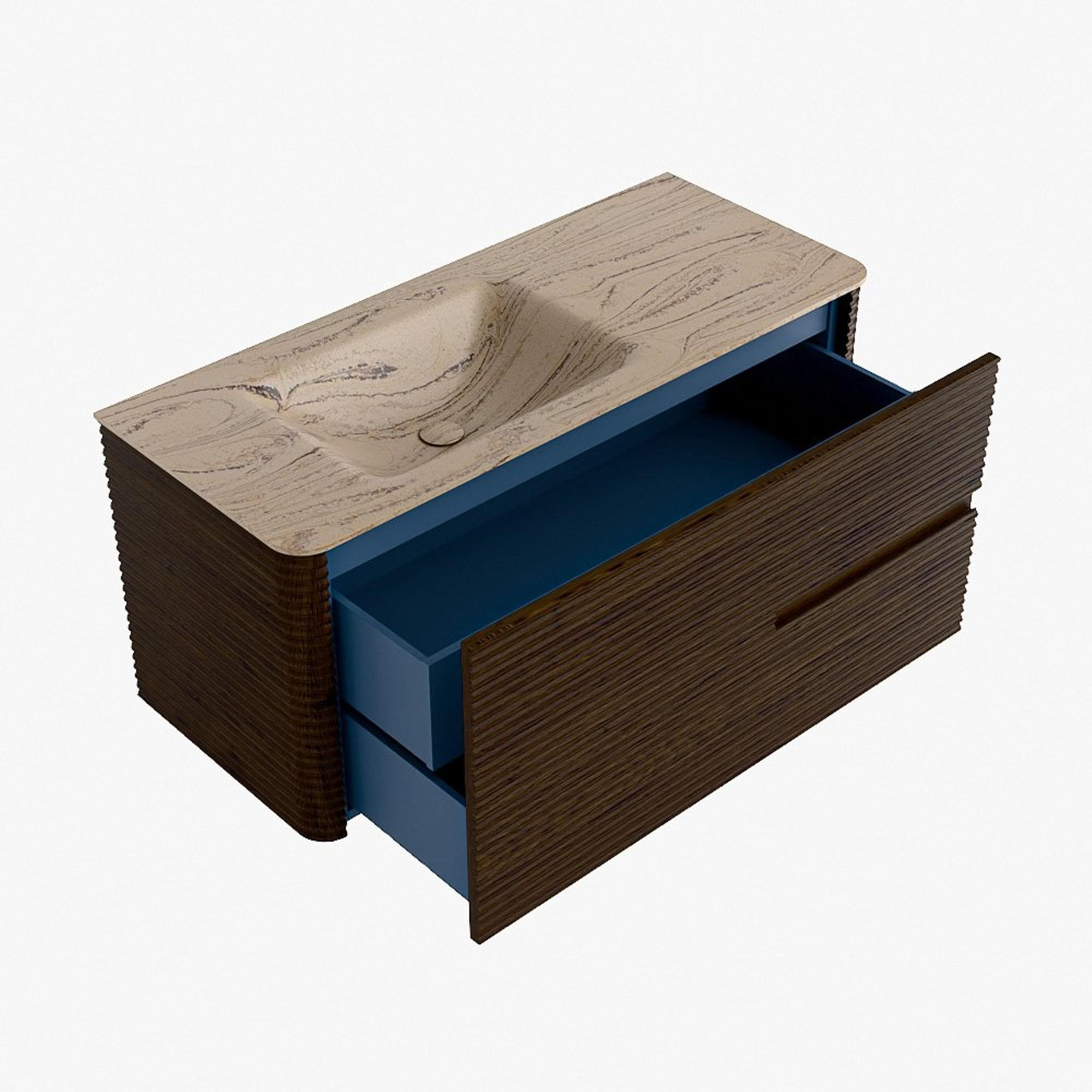 Mondiaz CIRO-DLUX Ensemble de meubles de salle de bains - 110x45x50cm - lavabo solid surface Arena - 1 vasque à gauche - sans trous de robinetterie - 2 tiroirs - Noyer