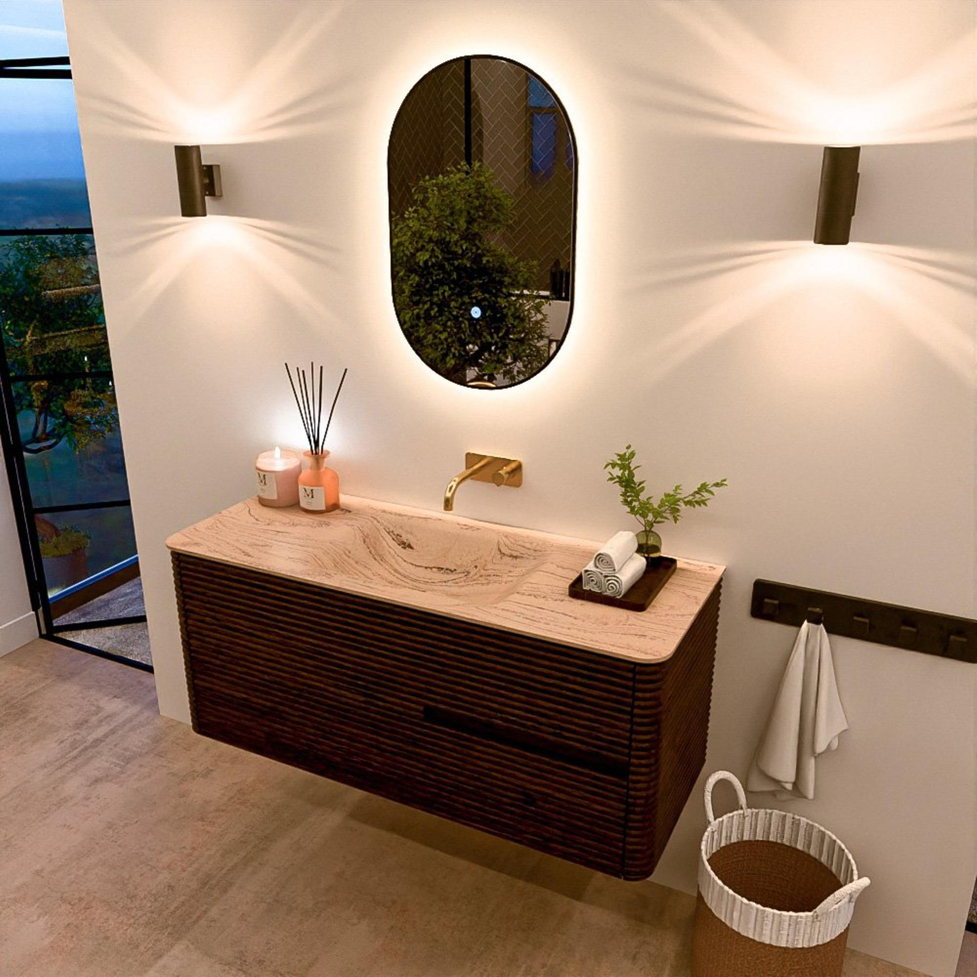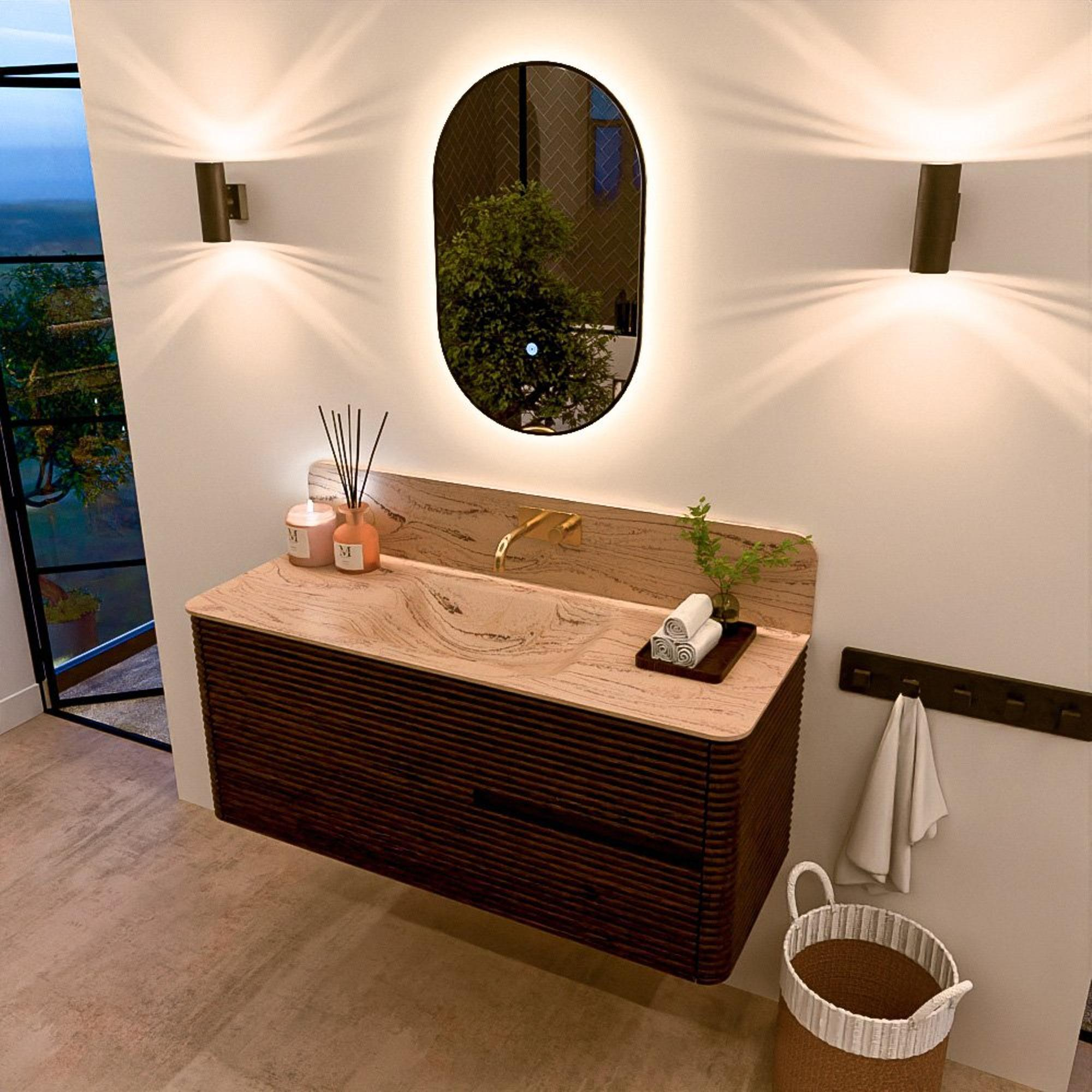 Mondiaz CIRO-DLUX Ensemble de meubles de salle de bains - 120x45x50cm - Plan-vasque solid surface Arena - 1 vasque au milieu - sans trous de robinetterie - 2 tiroirs - Noyer