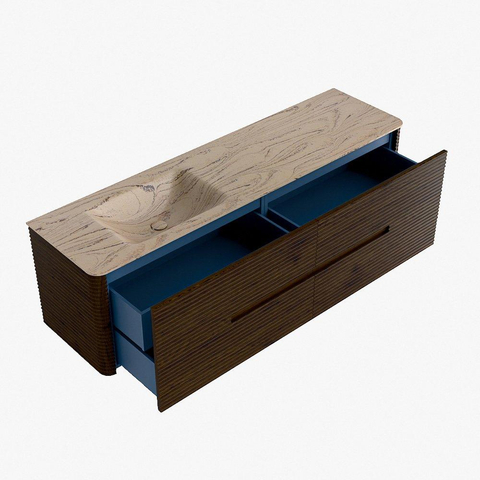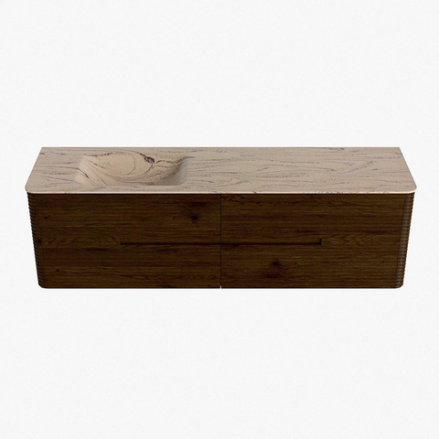 Mondiaz CIRO-DLUX Meuble de salle de bains ensemble - 170x45x50cm - Plan vasque solid surface Arena - 1 lavabo gauche - sans trous de robinetterie - 4 tiroirs - Noyer