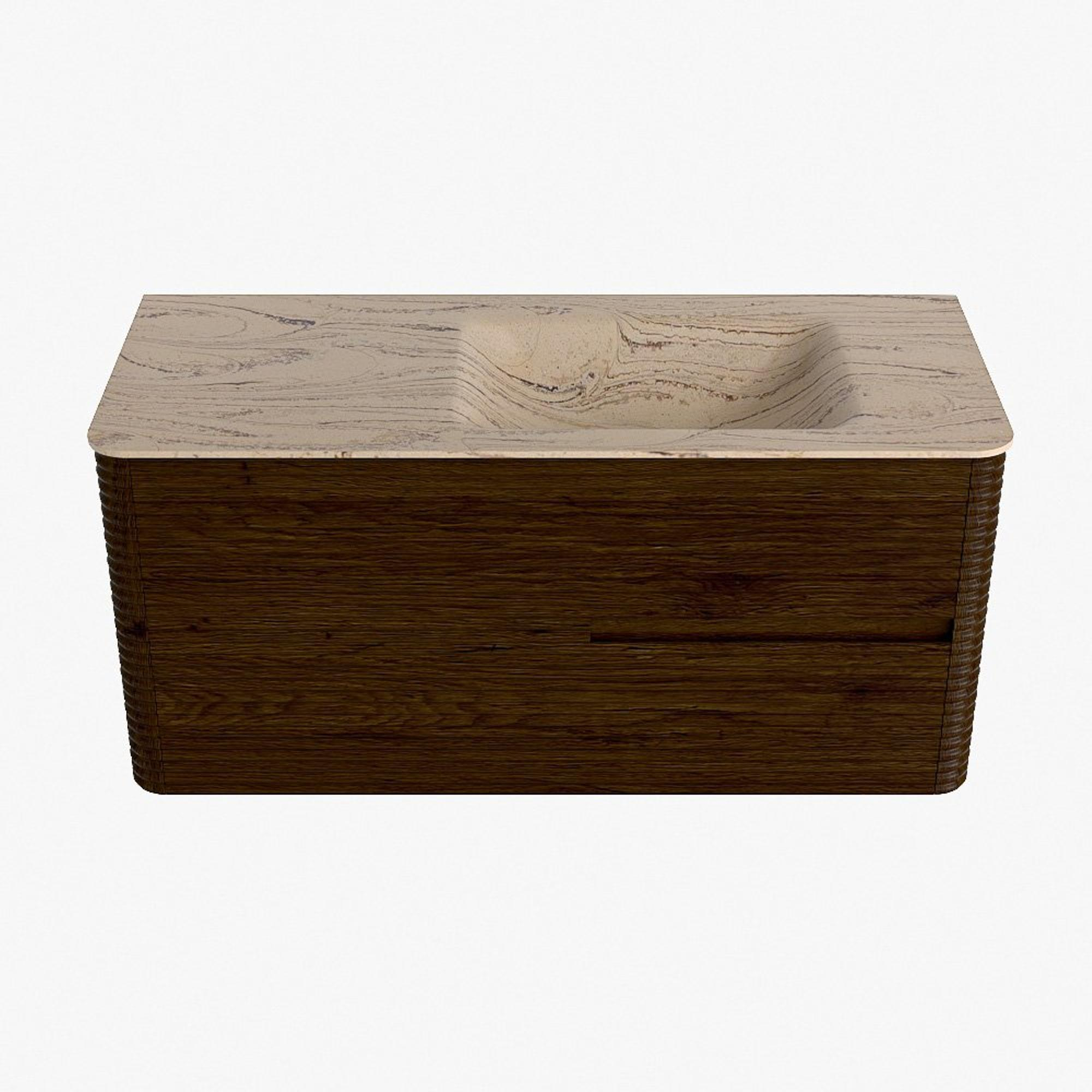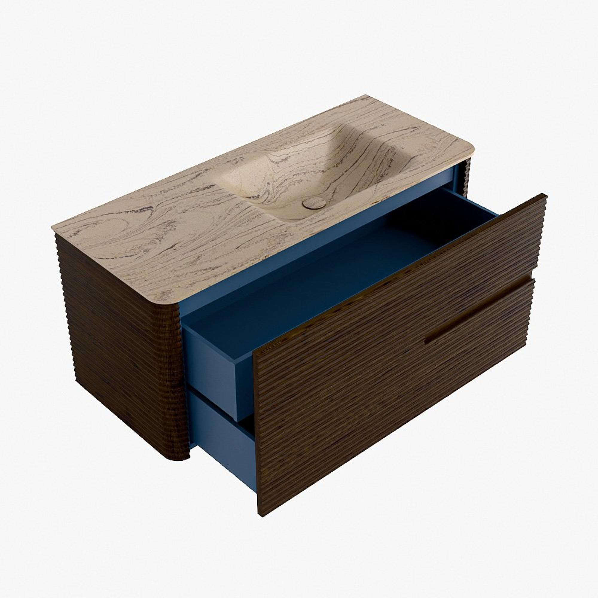 Mondiaz CIRO-DLUX Ensemble de meubles de salle de bains - 110x45x50cm - plan-vasque solid surface Arena - 1 lavabo à droite - sans trous de robinetterie - 2 tiroirs - Noyer