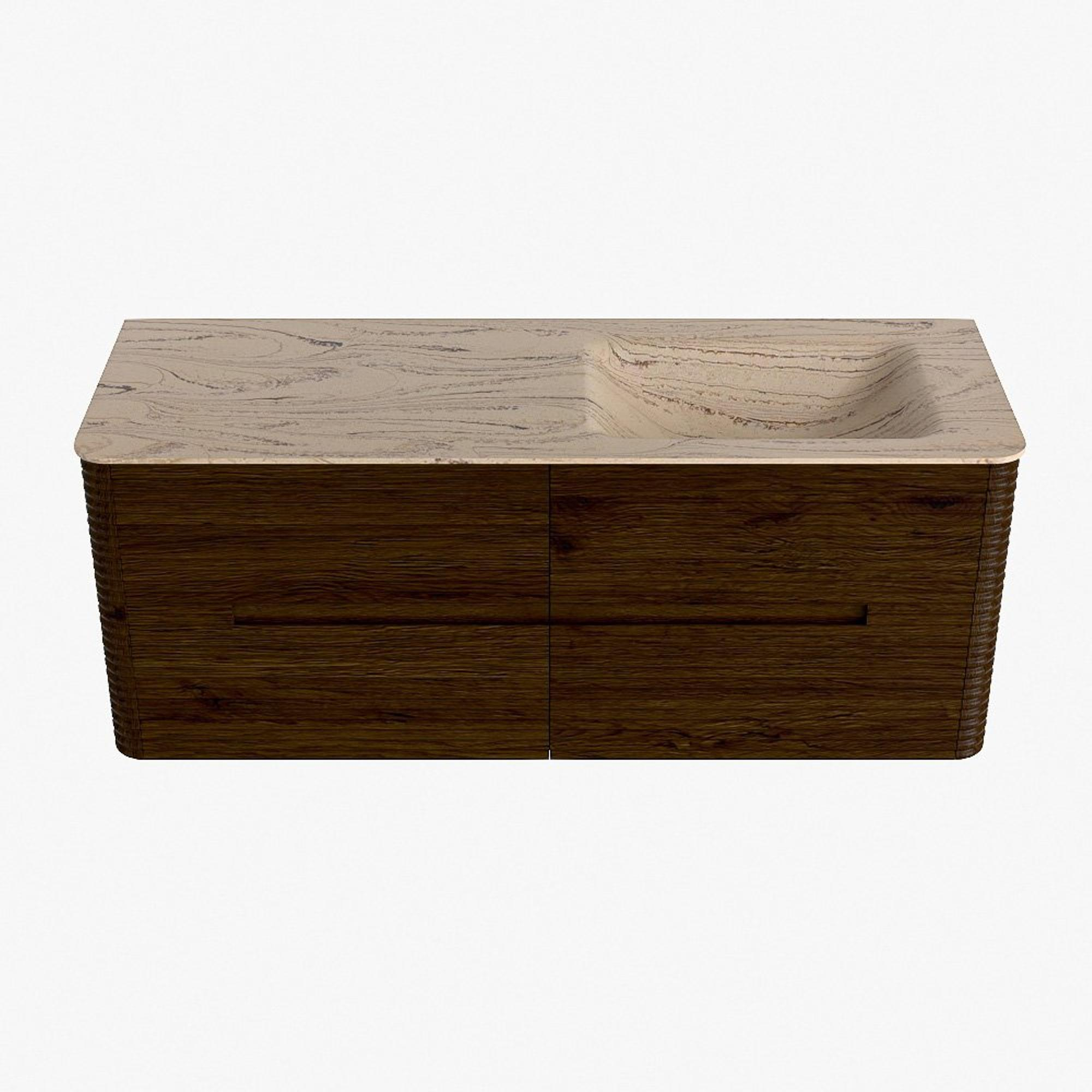 Mondiaz CIRO-DLUX Ensemble de meuble de salle de bains - 130x45x50cm - Plan-vasque Solid surface Arena - 1 lavabo à droite - sans trous de robinet - 4 tiroirs - Noyer