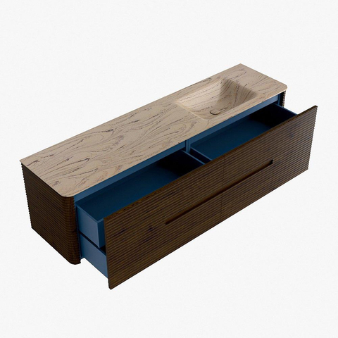 Mondiaz CIRO-DLUX Ensemble de meubles de salle de bains - 180x45x50cm - Plan-vasque solid surface Arena - 1 vasque à droite - sans trous de robinet - 4 tiroirs - Noyer