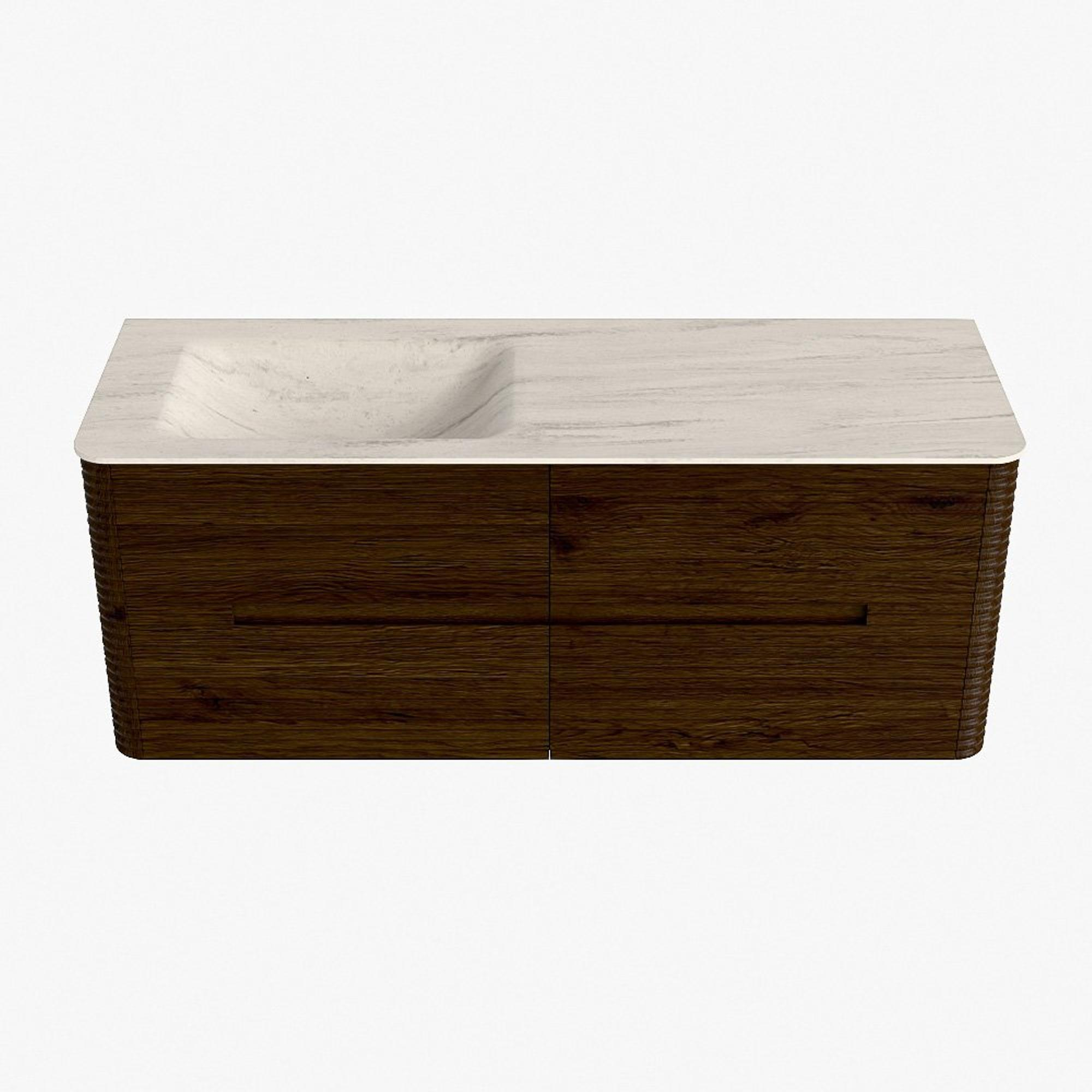 Mondiaz CIRO-DLUX Ensemble de meubles de salle de bains - 130x45x50cm - Plan vasque solid surface Meli - 1 bassin à gauche - 1 trou de robinet - 4 tiroirs - Noyer
