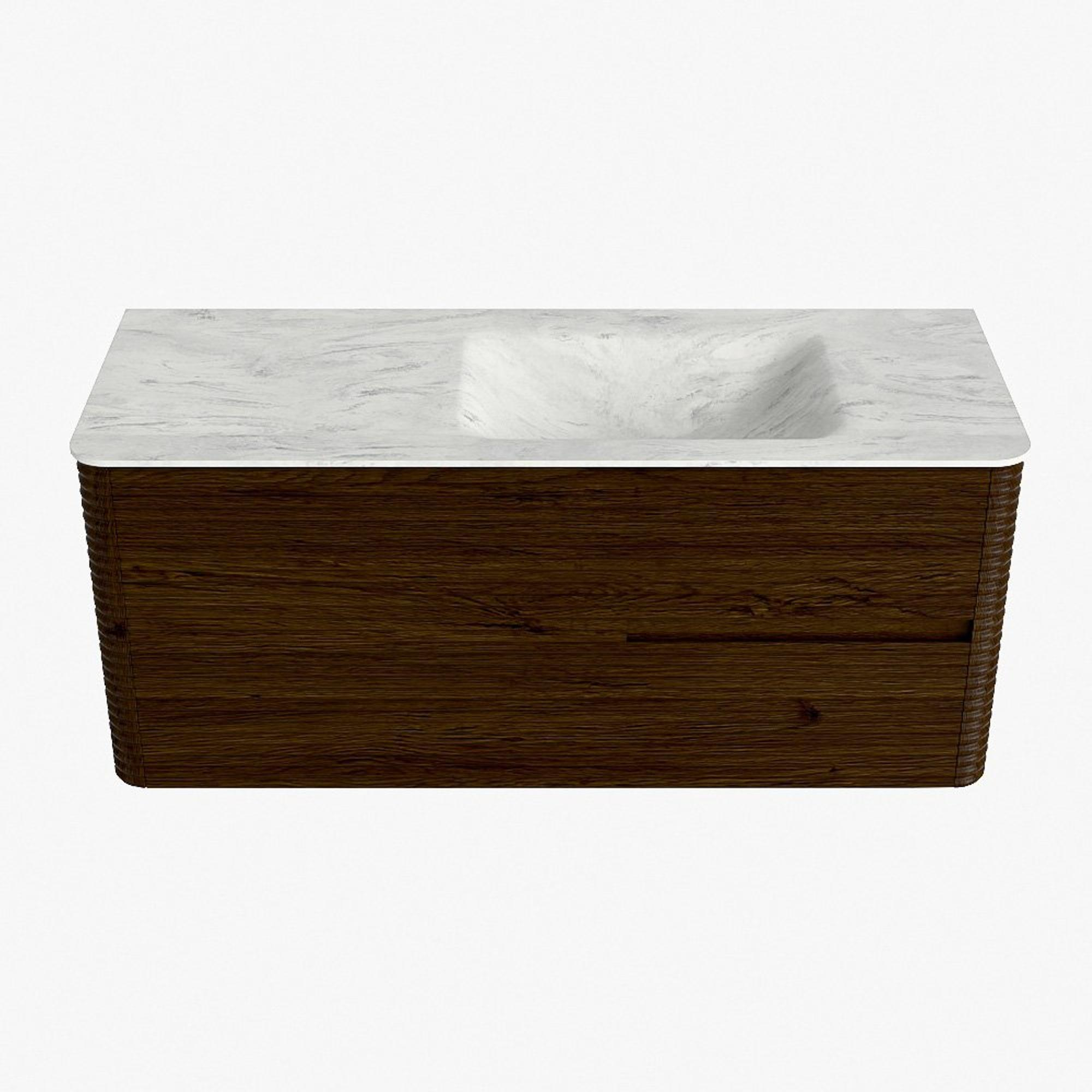 Mondiaz CIRO-DLUX Ensemble de meubles de salle de bains - 120x45x50cm - lavabo solid surface Opalo - 1 vasque à droite - sans trous de robinetterie - 2 tiroirs - Noyer