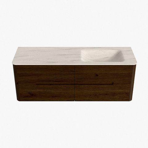 Mondiaz CIRO-DLUX Meuble de salle de bains - 140x45x50cm - Plan-vasque Solid Surface Meli - 1 lavabo à droite - sans trous de robinet - 4 tiroirs - Noyer