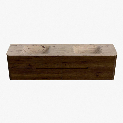 Mondiaz CIRO-DLUX Ensemble de meubles de salle de bains - 190x45x50cm - Plan vasque solid surface Arena - 2 vasques double - sans trous de robinetterie - 4 tiroirs - Noyer