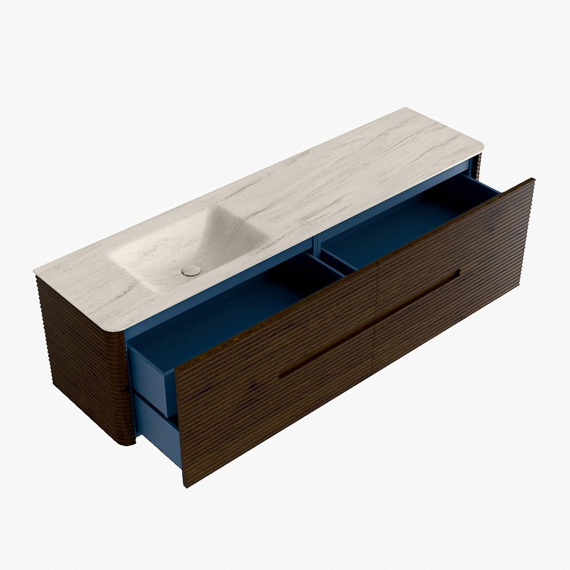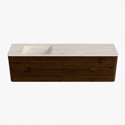 Mondiaz CIRO-DLUX Ensemble meuble de salle de bains - 180x45x50cm - Plan-vasque Solid Surface Meli - 1 lavabo à gauche - 1 trou de robinet - 4 tiroirs - Noyer