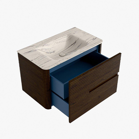 Mondiaz CIRO-DLUX Ensemble de meubles de salle de bains - 80x45x50cm - Plan vasque solid surface Nata - 1 vasque centrale - 1 trou de robinet - 2 tiroirs - Noyer