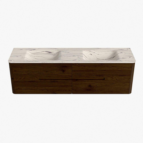 Mondiaz CIRO-DLUX Meuble de salle de bains - 170x45x50cm - Plan vasque solid surface Nata - 2 vasques Double - sans trous de robinetterie - 4 tiroirs - Noyer