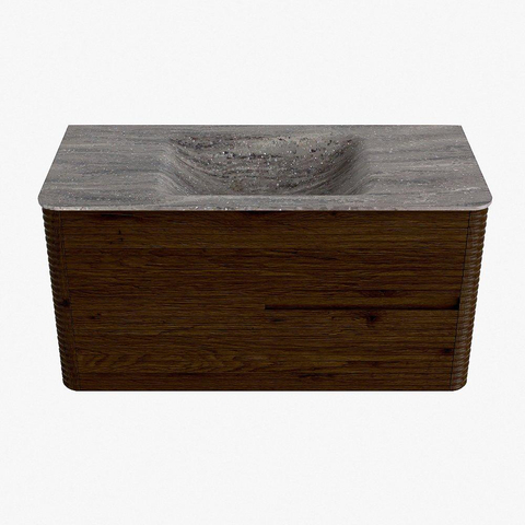 Mondiaz CIRO-DLUX Meuble de salle de bains - 100x45x50cm - Plan-vasque solid surface Oza - 1 lavabo central - 1 trou de robinet - 2 tiroirs - Noyer