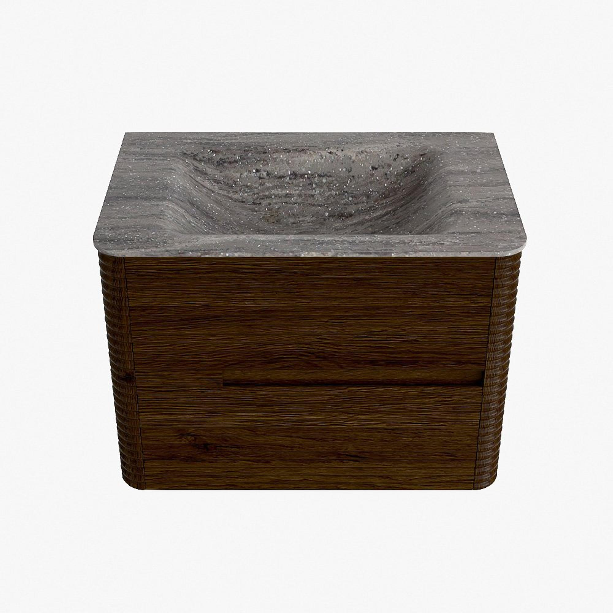 Mondiaz CIRO-DLUX Ensemble de meubles de salle de bains - 70x45x50cm - lavabo solid surface Oza - 1 vasque au milieu - sans trous de robinet - 2 tiroirs - Noyer