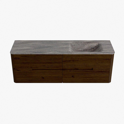 Mondiaz CIRO-DLUX Ensemble de meubles de salle de bains - 150x45x50cm - Vasque solid surface Oza - 1 lavabo à droite - 1 trou de robinet - 4 tiroirs - Noyer