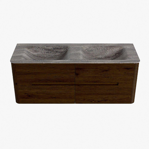 Mondiaz CIRO-DLUX Ensemble de meubles de salle de bains - 130x45x50cm - Plan vasque Solid surface Oza - 2 vasques Double - sans trous de robinetterie - 4 tiroirs - Noyer