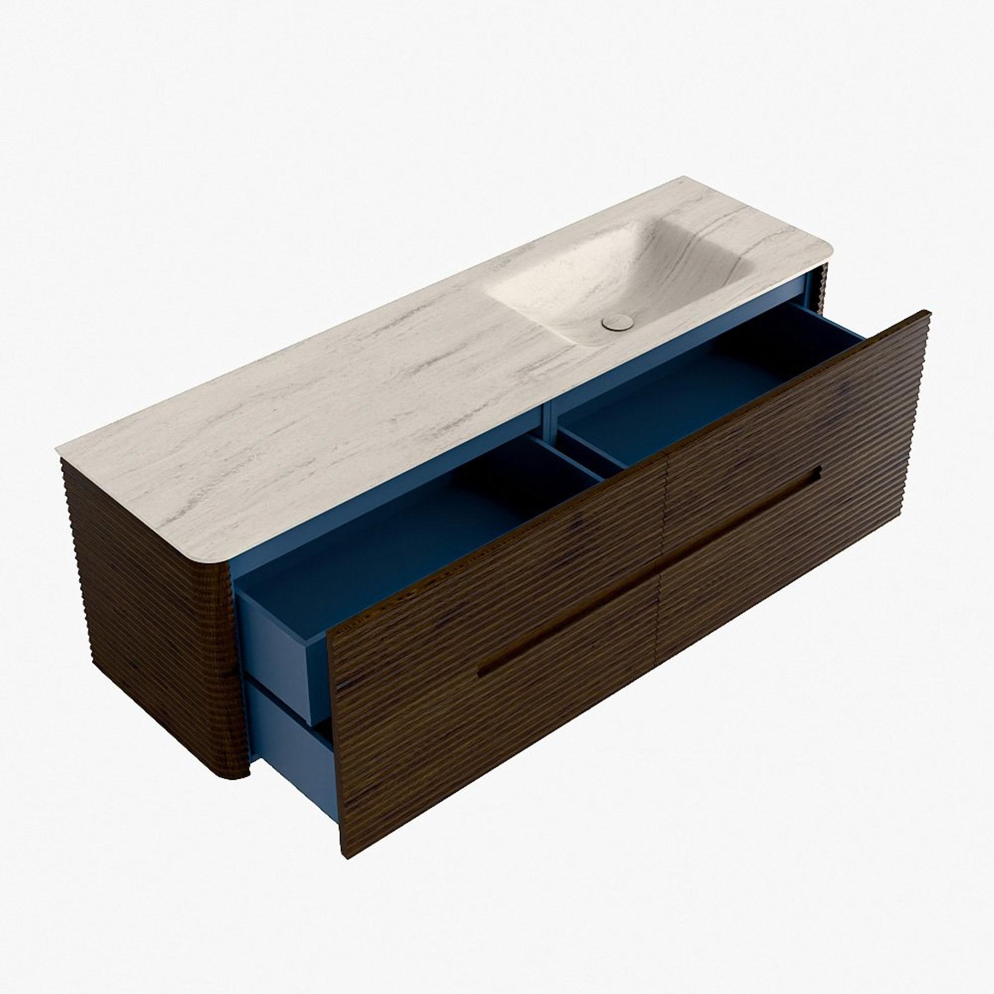 Mondiaz CIRO-DLUX Ensemble de meubles de salle de bains - 160x45x50cm - Plan vasque Solid surface Meli - 1 lavabo à droite - 1 trou de robinet - 4 tiroirs - Noyer