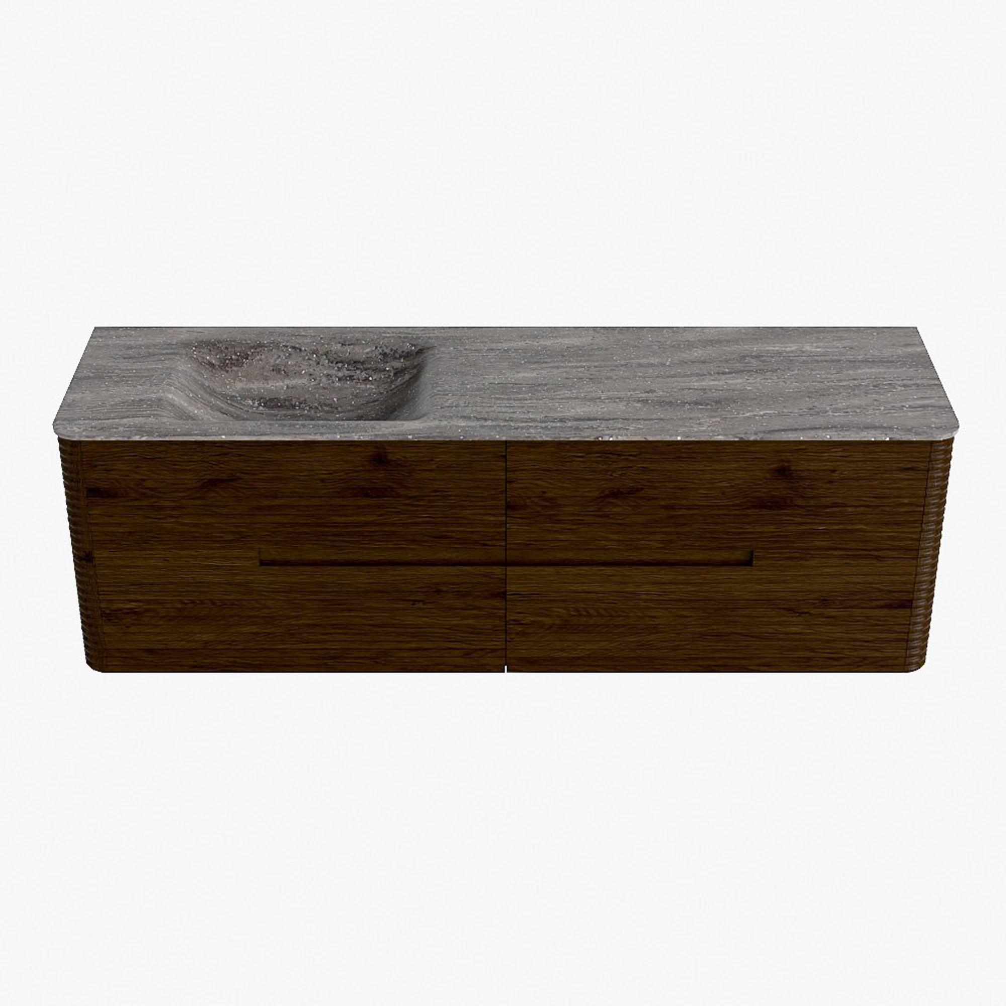Mondiaz CIRO-DLUX Meuble de salle de bains - 160x45x50cm - Plan-vasque en solid surface Oza - 1 lavabo à gauche - 1 trou de robinet - 4 tiroirs - Noyer