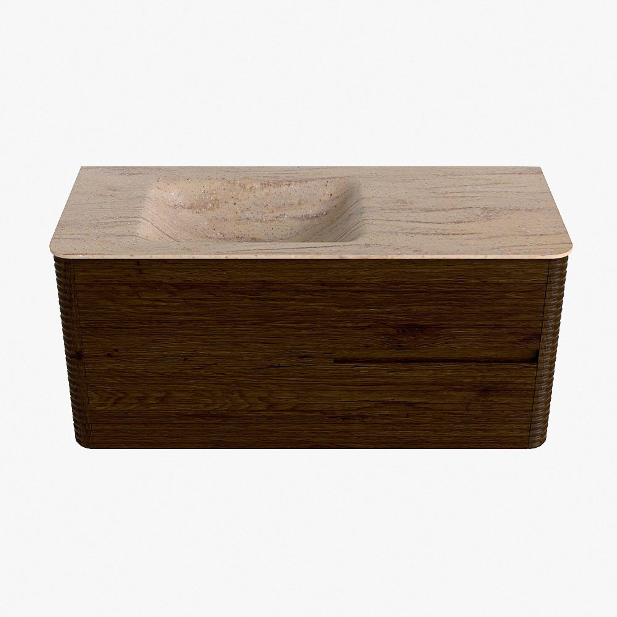 Mondiaz CIRO-DLUX Meuble de salle de bains - 110x45x50cm - Plan vasque Solid surface Saba - 1 vasque à gauche - 1 trou de robinet - 2 tiroirs - Noyer