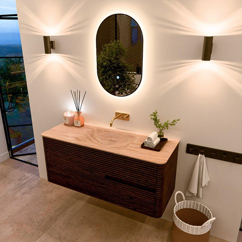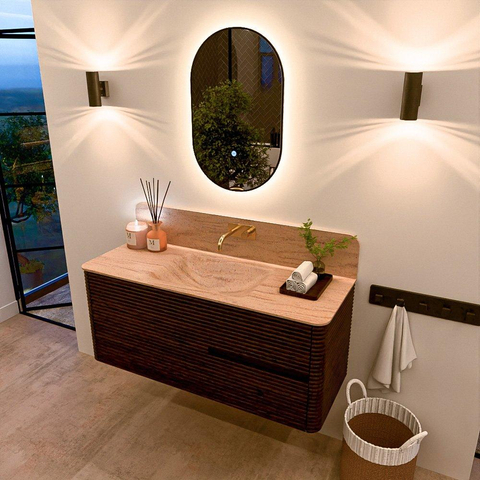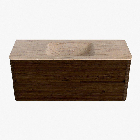 Mondiaz CIRO-DLUX Ensemble de meubles de salle de bains - 120x45x50cm - Vasque solid surface Saba - 1 lavabo au milieu - sans trous de robinet - 2 tiroirs - Noyer