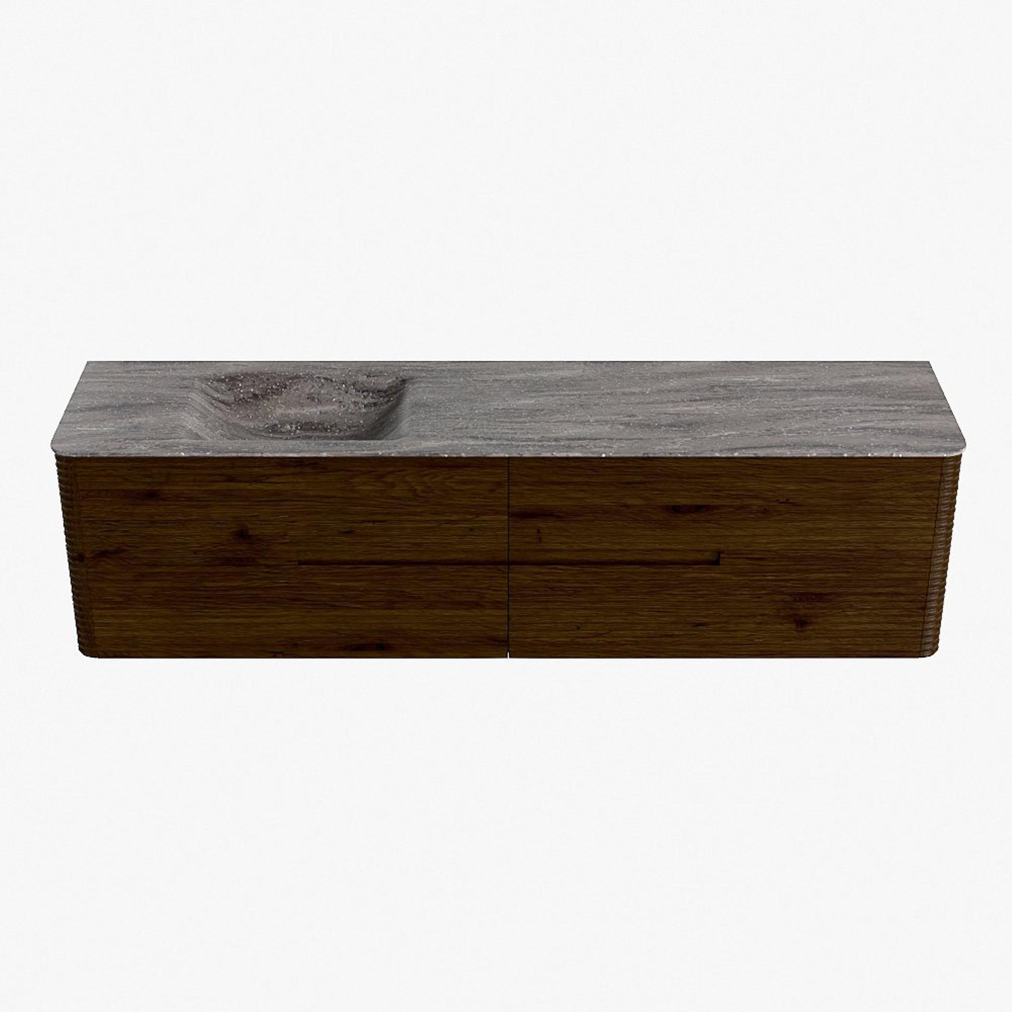 Mondiaz CIRO-DLUX Meuble de salle de bains - 190x45x50cm - Plan vasque solid surface Oza - 1 lavabo à gauche - 1 trou de robinet - 4 tiroirs - Noyer