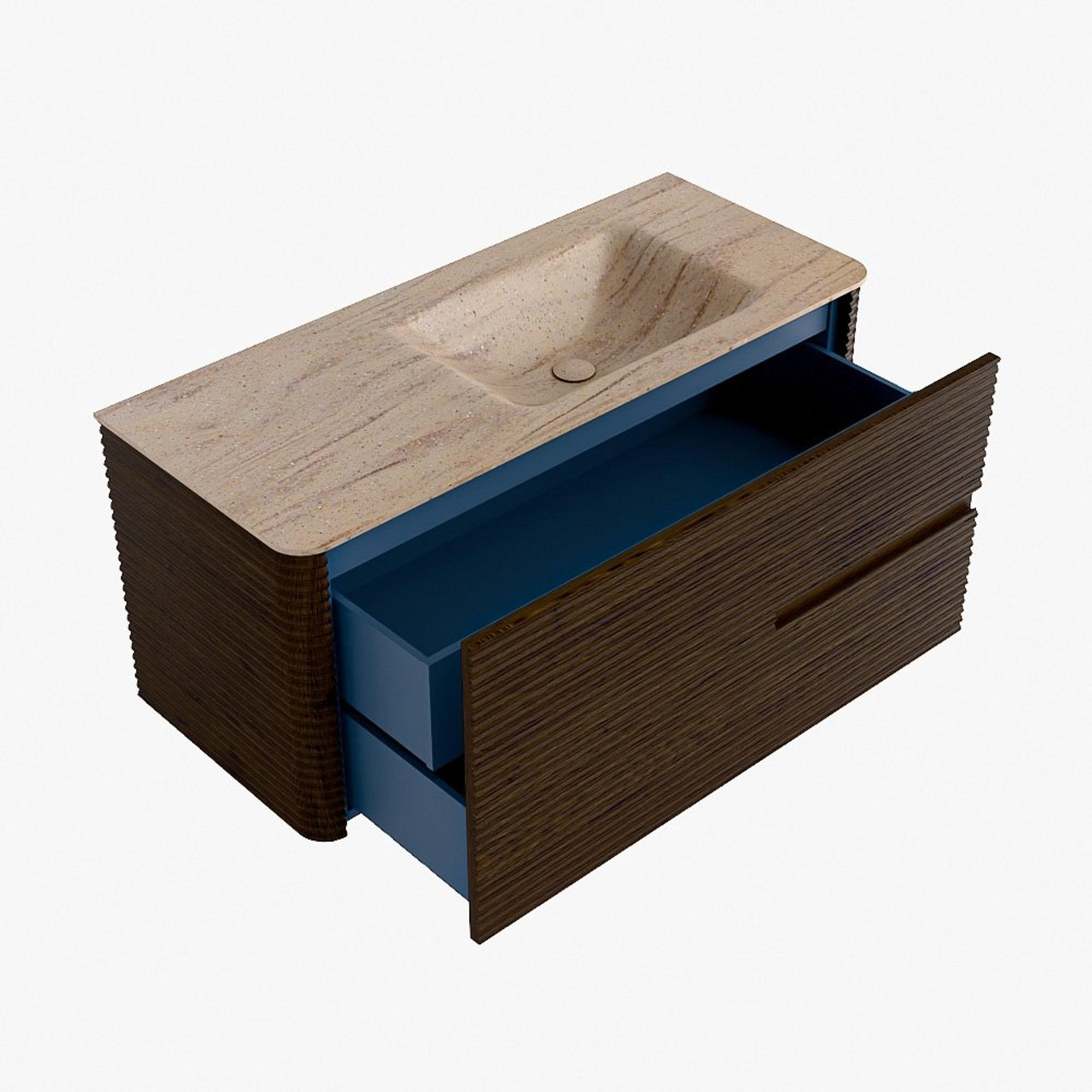 La praticité est un élément essentiel de la gamme CIRO. Le meuble dispose d’un grand tiroir avec un tiroir intérieur supplémentaire, idéal pour ranger de manière organisée tous les articles quotidiens de la salle de bain. Grâce à la poignée intégrée et au mécanisme de fermeture douce, la façade reste sobre, élégante et épurée.
