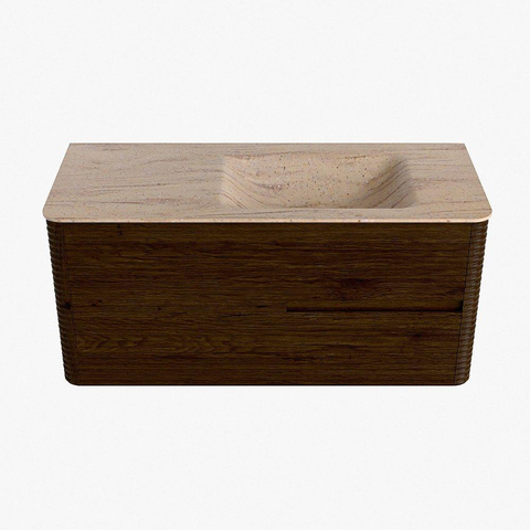 Mondiaz CIRO-DLUX Ensemble de meubles de salle de bains - 110x45x50cm - Vasque solid surface Saba - 1 lavabo à droite - 1 trou de robinet - 2 tiroirs - Noyer