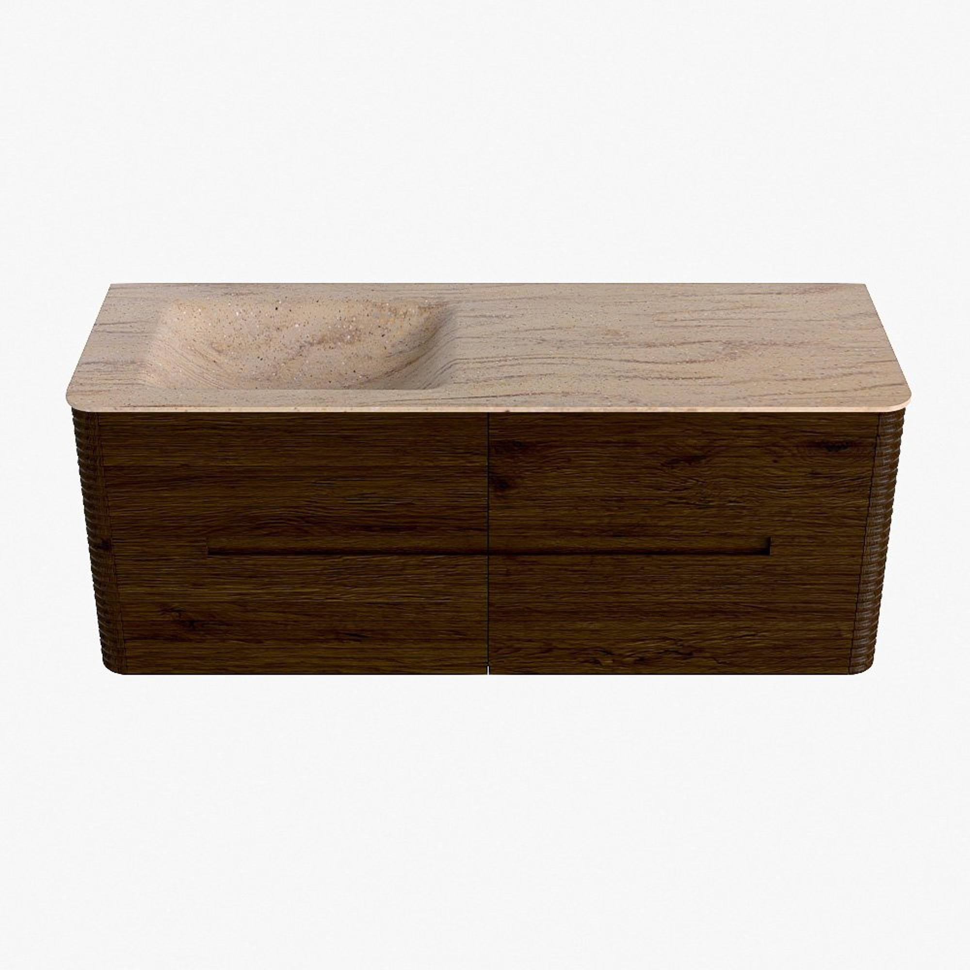 Mondiaz CIRO-DLUX Ensemble de meubles de salle de bains - 130x45x50cm - Plan vasque Solid surface Saba - 1 lavabo à gauche - 1 trou de robinetterie - 4 tiroirs - Noyer