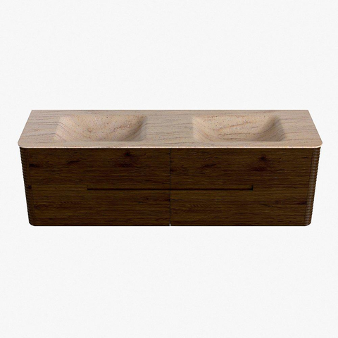 Mondiaz CIRO-DLUX Ensemble meuble de salle de bains - 160x45x50cm - Plan-vasque solid surface Saba - 2 vasques double - 2 trous de robinetterie - 4 tiroirs - Noyer
