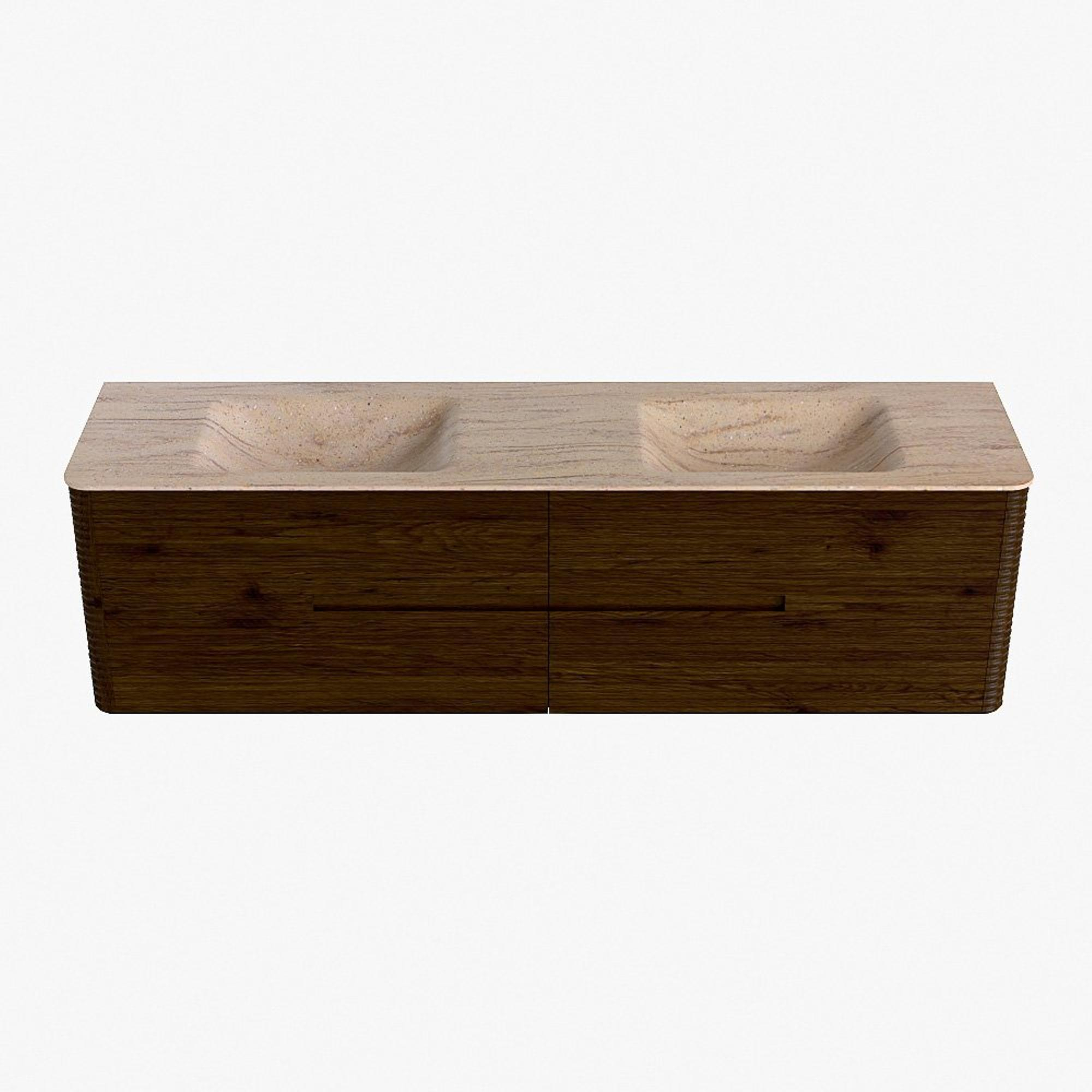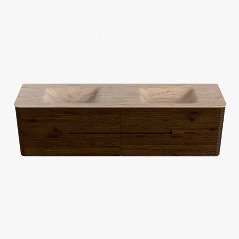 Mondiaz CIRO-DLUX Meuble de salle de bains - 180x45x50cm - plan-vasque solid surface Saba - 2 vasques Double - sans trous de robinetterie - 4 tiroirs - Noyer