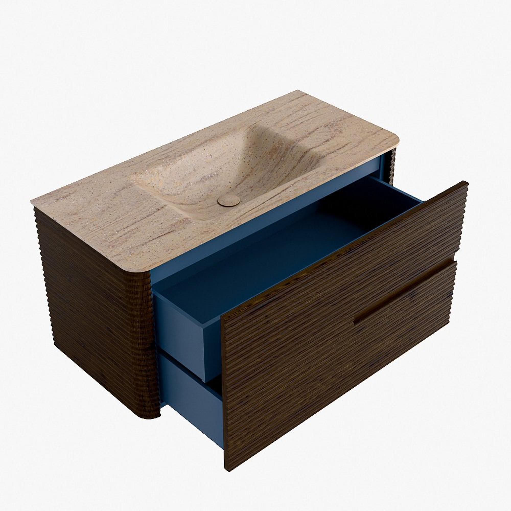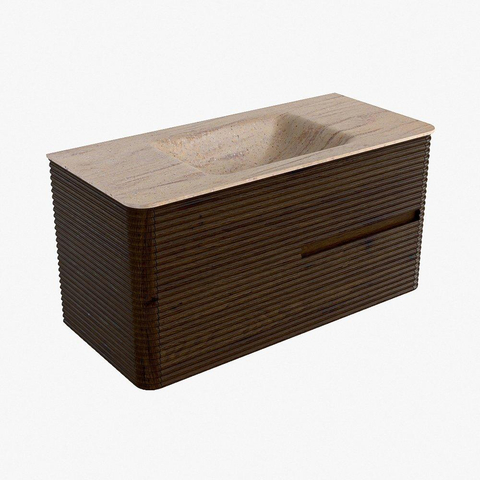 Mondiaz CIRO-DLUX Ensemble de meubles de salle de bains - 100x45x50cm - Plan vasque Solid surface Saba - 1 vasque au milieu - 1 trou de robinet - 2 tiroirs - Noyer