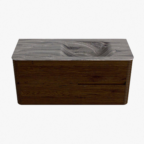 Mondiaz CIRO-DLUX Meuble de salle de bains - 110x45x50cm - Plan vasque solid surface Sombra - 1 lavabo à droite - sans trous de robinetterie - 2 tiroirs - Noyer