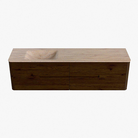 Mondiaz CIRO-DLUX Meuble de salle de bains - 180x45x50cm - plan vasque solid surface Saba - 1 lavabo à gauche - sans trous de robinetterie - 4 tiroirs - Noyer