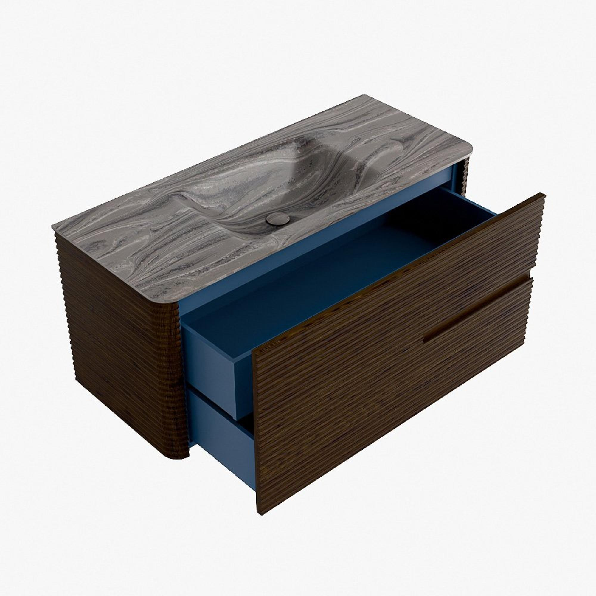 La praticité est un élément essentiel de la gamme CIRO. Le meuble dispose d’un grand tiroir avec un tiroir intérieur supplémentaire, idéal pour ranger de manière organisée tous les articles quotidiens de la salle de bain. Grâce à la poignée intégrée et au mécanisme de fermeture douce, la façade reste sobre, élégante et épurée.