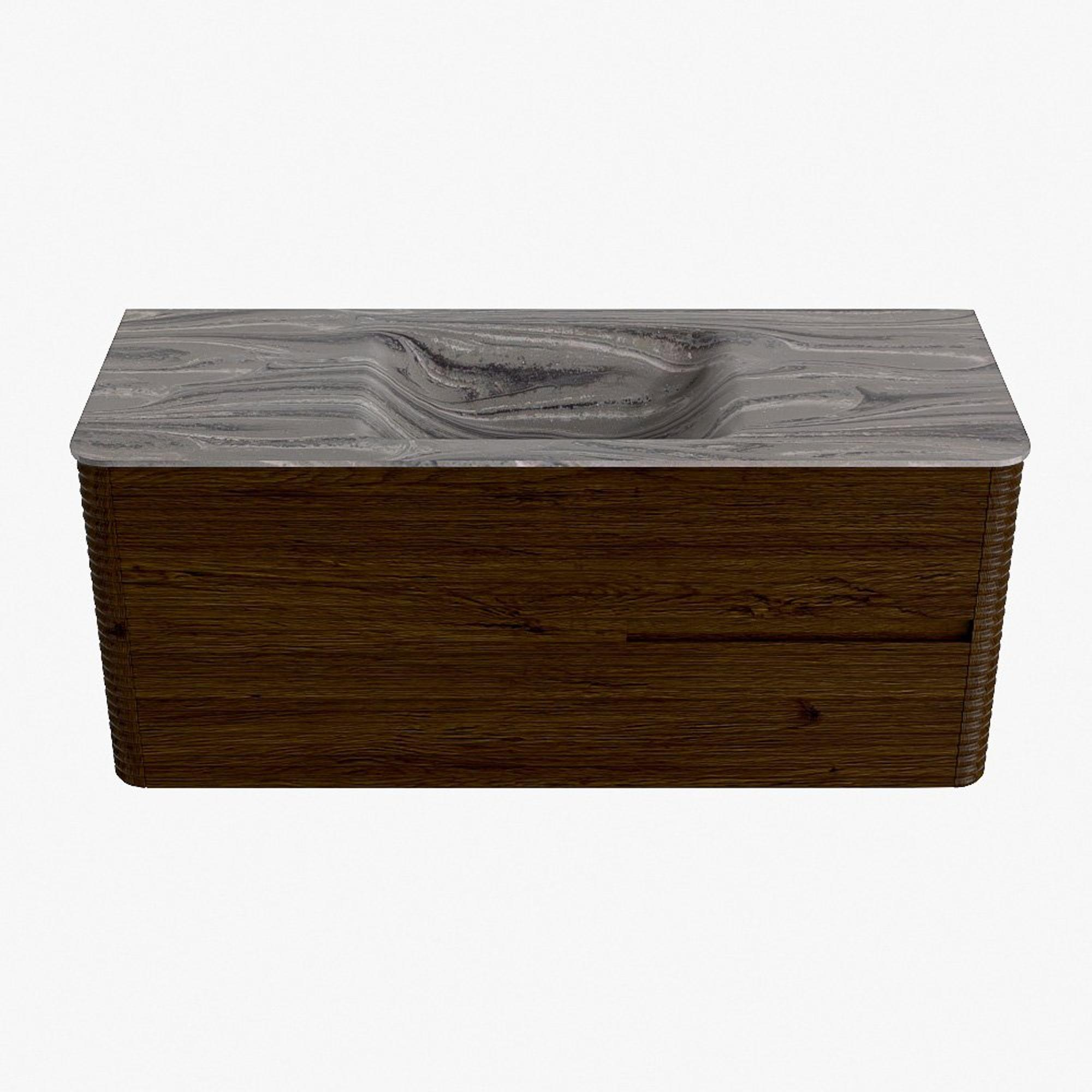 Mondiaz CIRO-DLUX Ensemble de meubles de salle de bains - 120x45x50cm - lavabo en solid surface Sombra - 1 vasque au milieu - sans trous de robinet - 2 tiroirs - Noyer