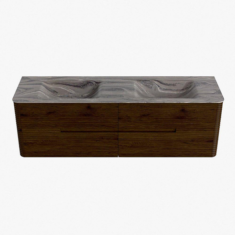Mondiaz CIRO-DLUX Ensemble de meubles de salle de bains - 160x45x50cm - Plan vasque solid surface Sombra - 2 vasques double - 2 trous de robinet - 4 tiroirs - Noyer