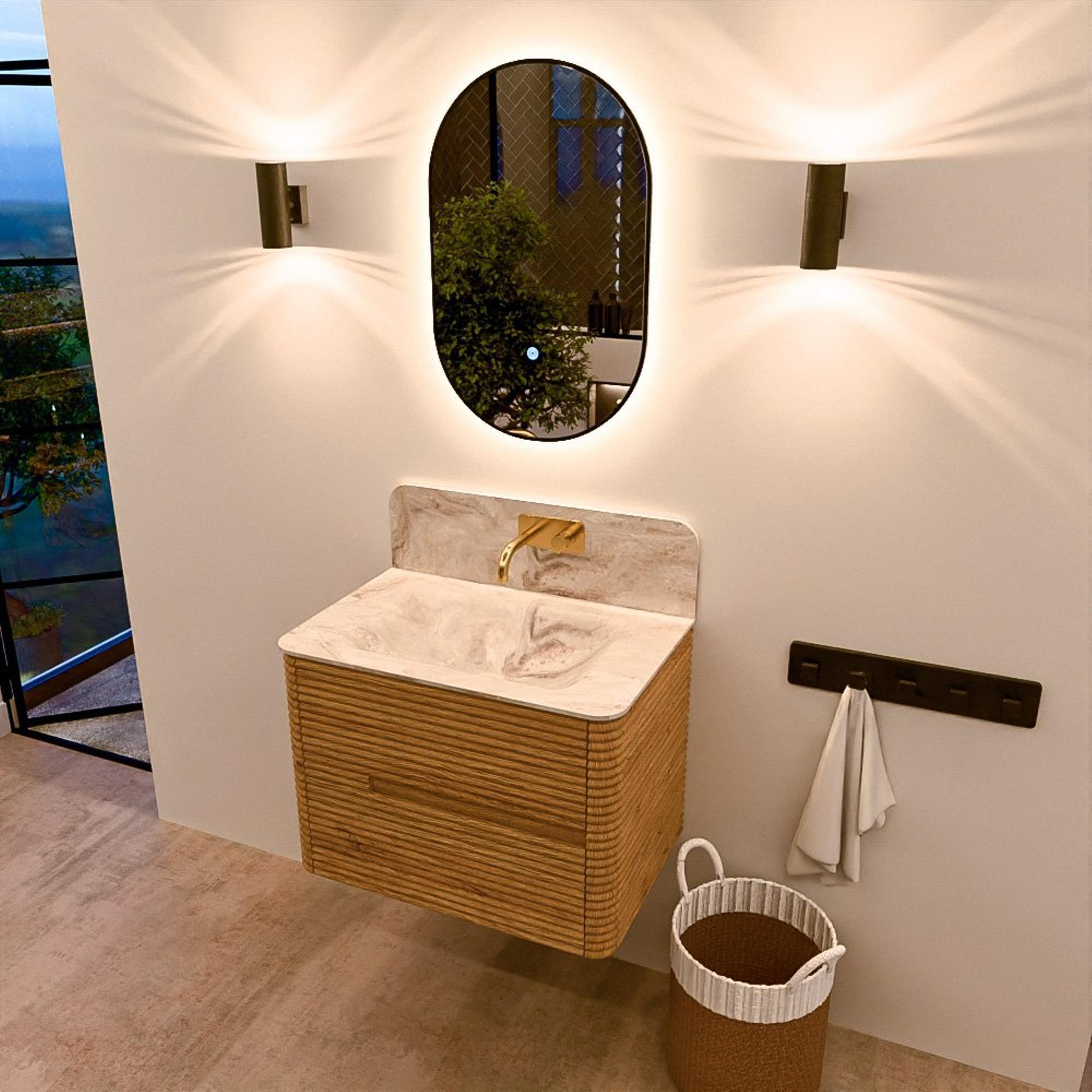 Mondiaz CIRO-DLUX Ensemble meuble de salle de bains - 70x45x50cm - lavabo Solid surface Frappe - 1 vasque au milieu - sans trous de robinet - 2 tiroirs - Chêne