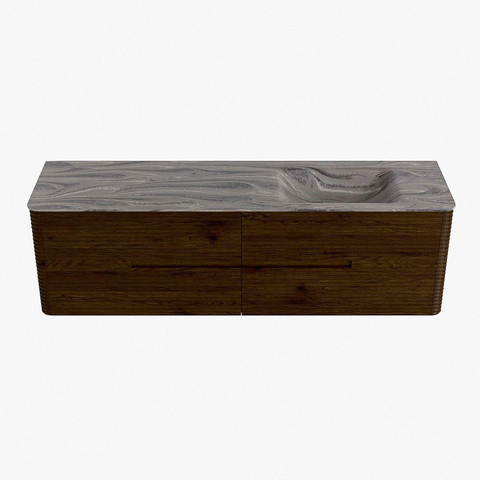 Mondiaz CIRO-DLUX Ensemble de meubles de salle de bains - 170x45x50cm - vasque en solid surface Sombra - 1 bassin à droite - sans trous de robinet - 4 tiroirs - Noyer