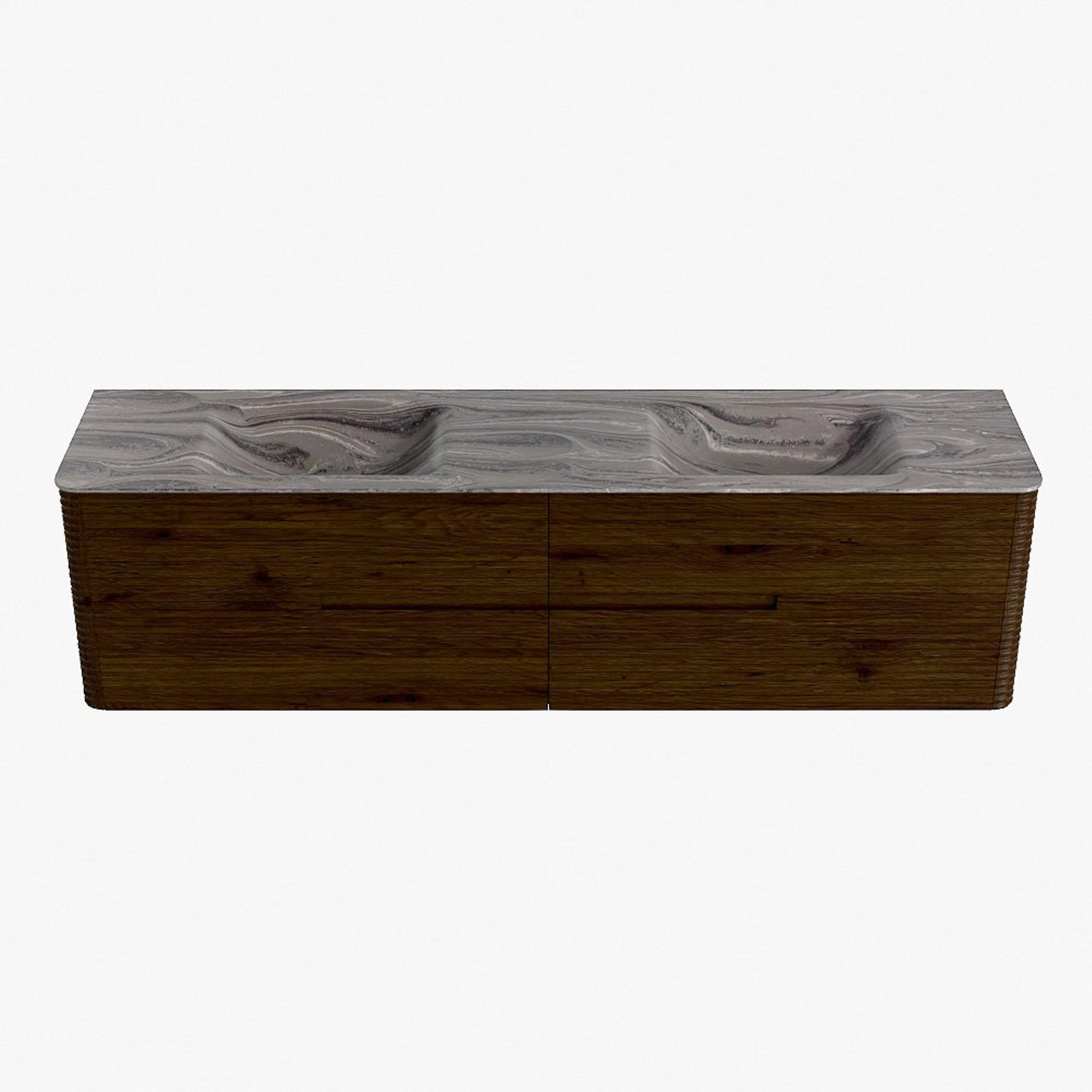 Mondiaz CIRO-DLUX Meuble de salle de bains - 190x45x50cm - lavabo en Solid surface Sombra - 2 vasques double - sans trous de robinet - 4 tiroirs - Noyer