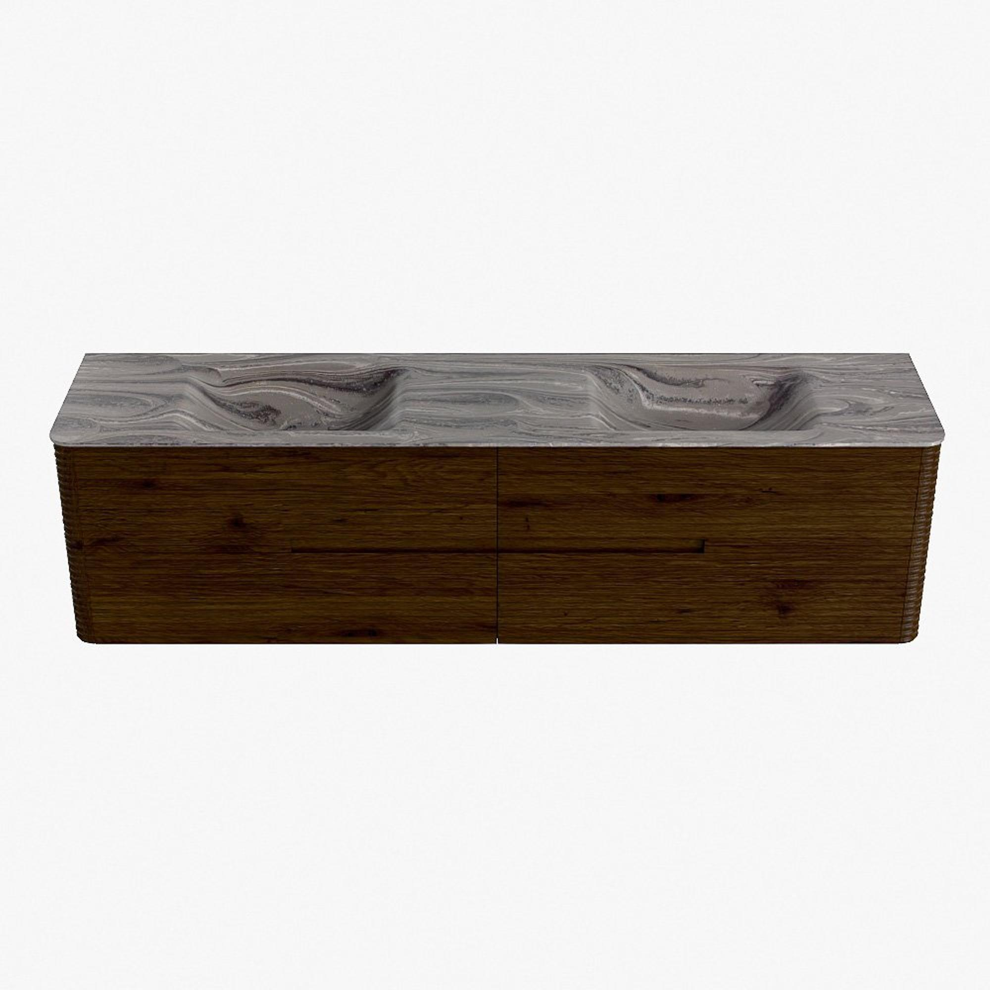 Mondiaz CIRO-DLUX Meuble de salle de bains - 190x45x50cm - Plan vasque solid surface Sombra - 2 lavabos double - 2 trous de robinetterie - 4 tiroirs - Noyer