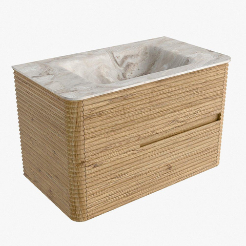 Mondiaz CIRO-DLUX Meuble de salle de bains - 80x45x50cm - Plan vasque solid surface Frappe - 1 lavabo au milieu - 1 trou de robinet - 2 tiroirs - Chêne